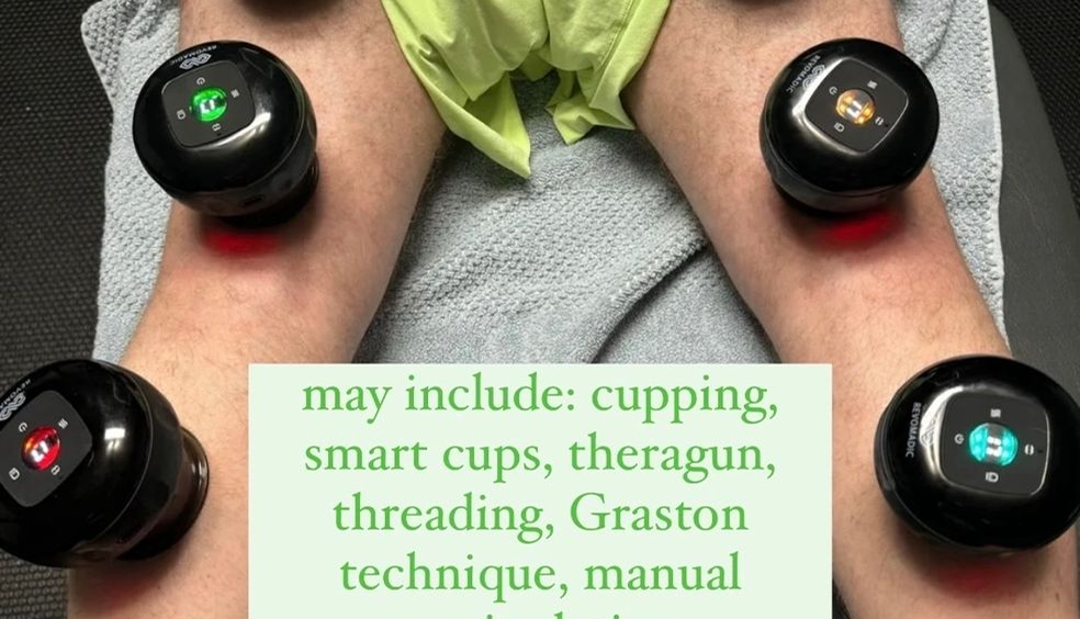 session may also include; Shockwave, Theragun, Cupping, yoga therapy, rehabilitation exercises, and flexibility techniques