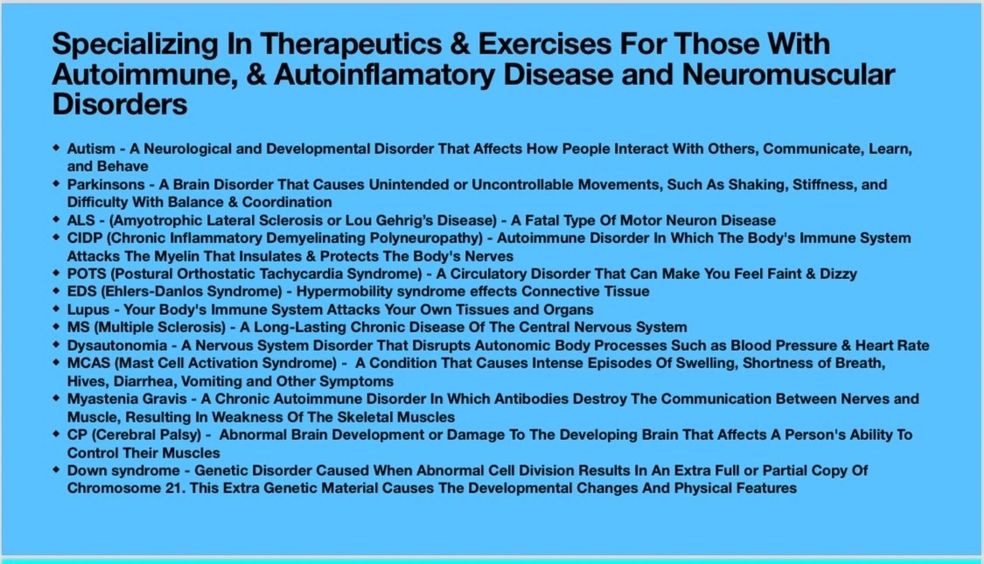 may include: neux interactive, neuromuscular stimulation technology, V-Scan assessment, rehabilitation exercises, and flexibility techniques